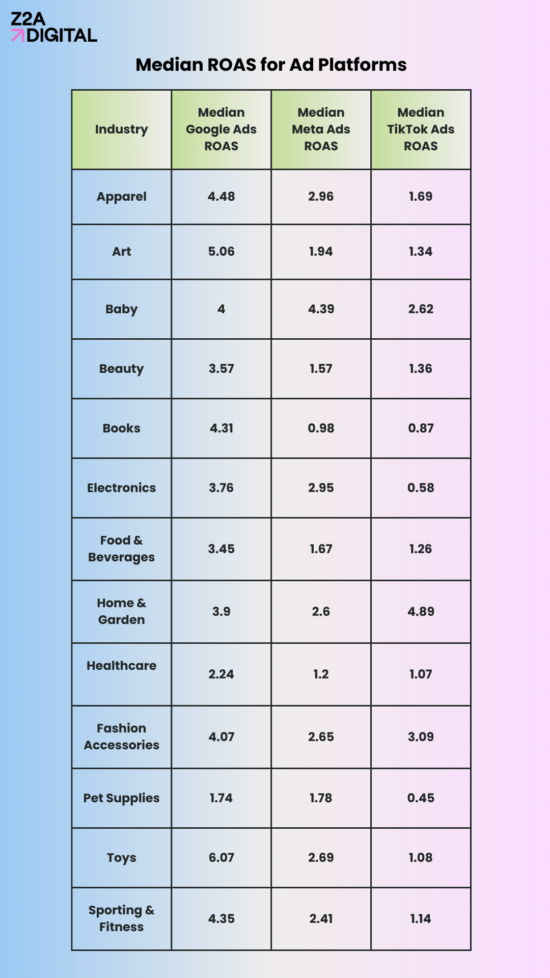 The ideal ROAS varies among industries, although a common range is the 2:1-4:1. That said, each sector has an ideal range. Here's a look at some industry standards for ROAS.