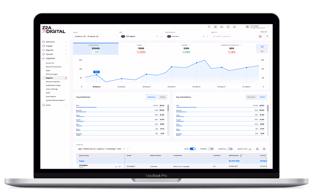 Our in-house media buying technology is built to make every campaign smarter and more profitable. By analyzing vast amounts of ad data, we optimize in real-time across native, in-app, and mobile web sources for the highest user LTV, ROAS, and multi-day retention.